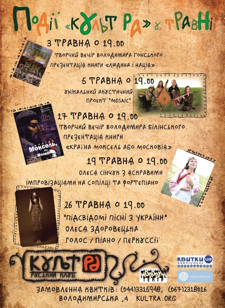 У суботу, 14-го травня – зустріч учасників літературного клубу зі Львова, будемо читати) під гітару. У вівторок, 3-го збираємося поваляти насухо! Приходьте, будемо розвиватися, адже коли ручки працюють-добре стає на душі!