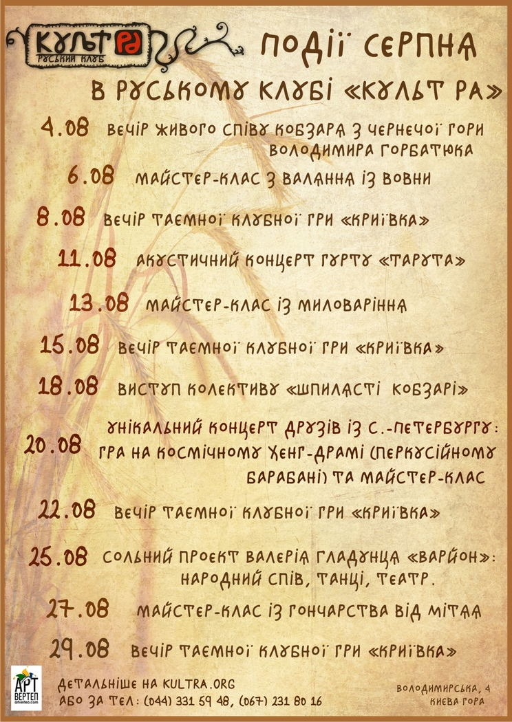 Коментар для «Афіші заходів у Культ РА - Події Серпня»