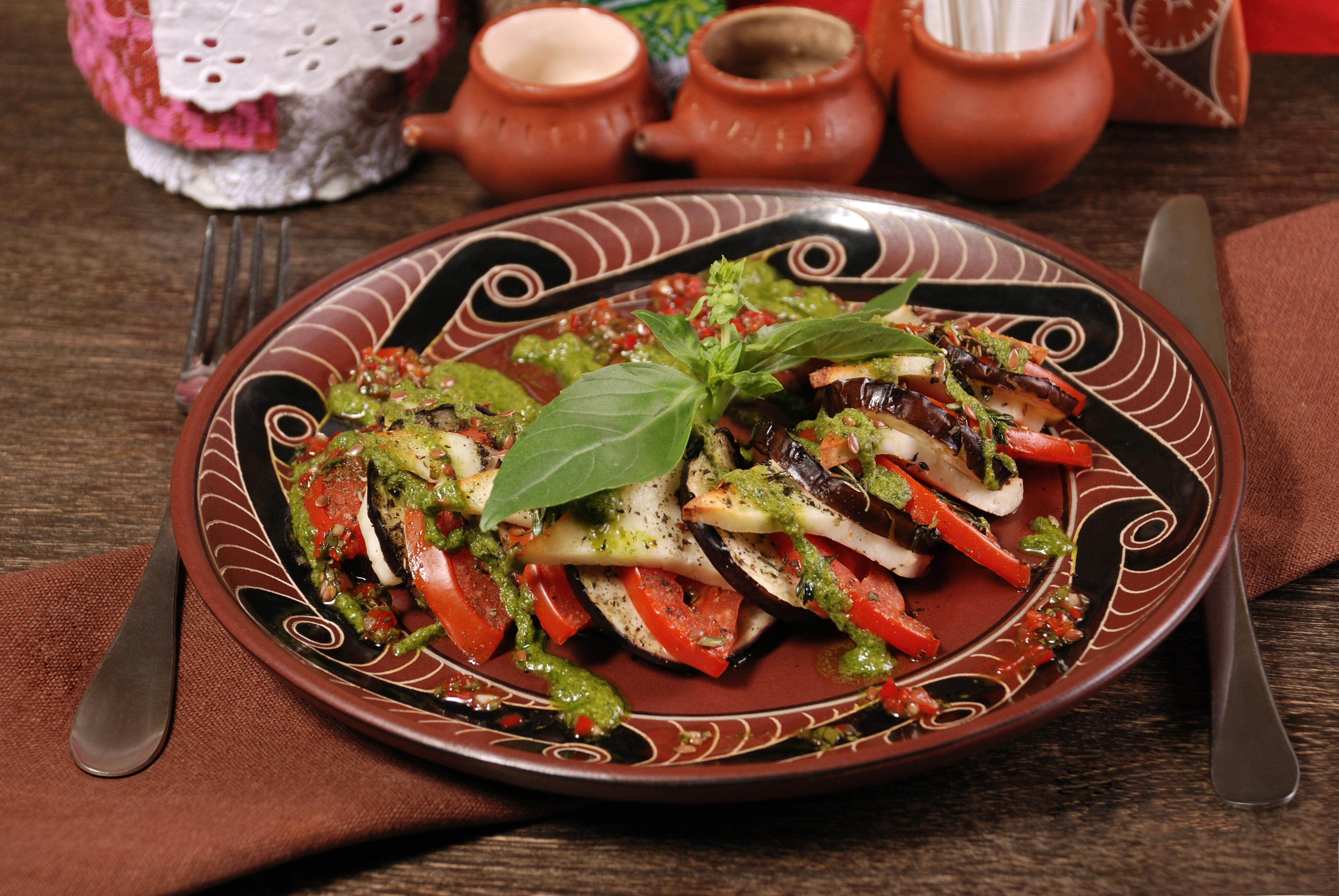 ПОМІДОРИ ТА БАКЛАЖАНИ ЗАПЕЧЕНІ З СИРОМ (240/30г.      72грн.)   Соковиті помідори та духмяні баклажани запечені з твердим сиром під пряними травами.