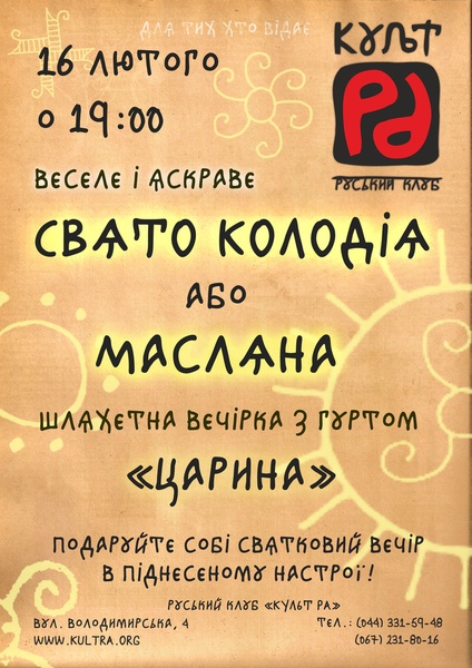 Святкування Колодія або Масляної в Руському Клубі "Культ РА" 16 лютого 2013 р. о 19:00