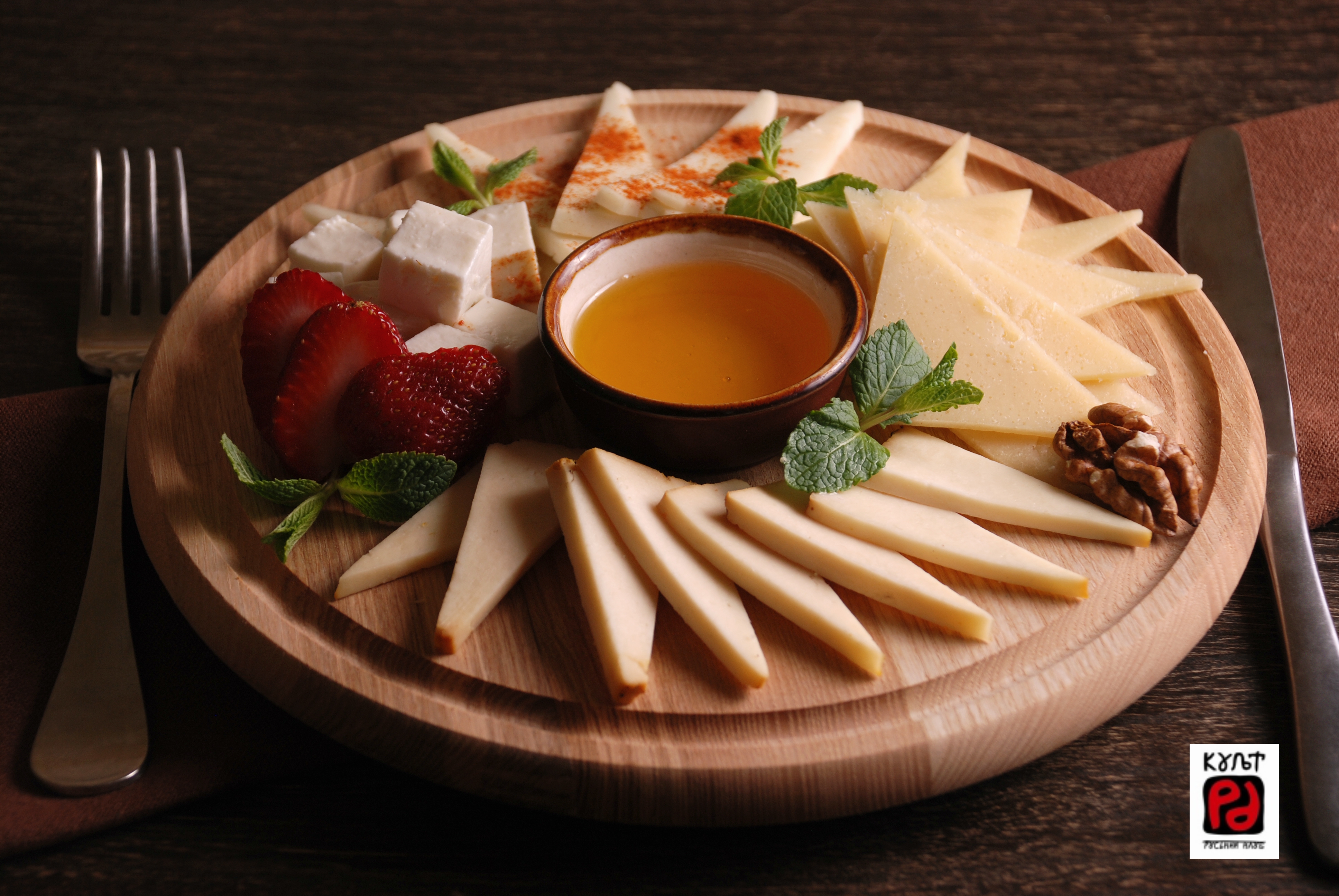 ШЛЯХЕТНЕ СИРНЕ ТОВАРИСТВО МІСЦЕВЕ (200/25 г. 130 грн.) Дошка для шанувальників сирів різноманітних. На дошці ми зібрали бринзу домашню, пармезан, панір копчений та панір смажений. Ситна і корисна закусочка.